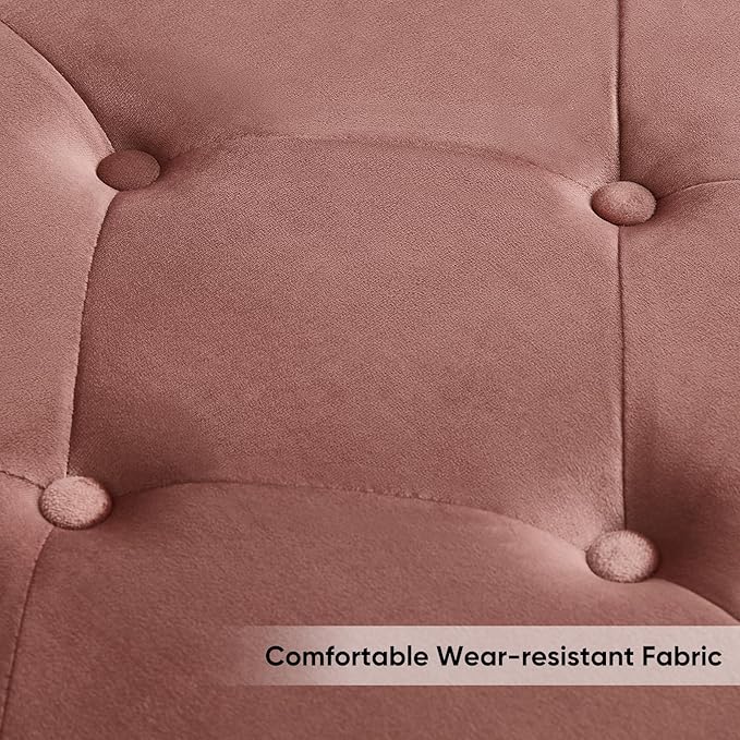 65" Storage Ottoman Bench, End of Bed Storage Bench King Size with Tufted Button Upholstered and Gold Legs, Bedroom Benches with Armrests for Living Room Window and Entryway, Rose Gold