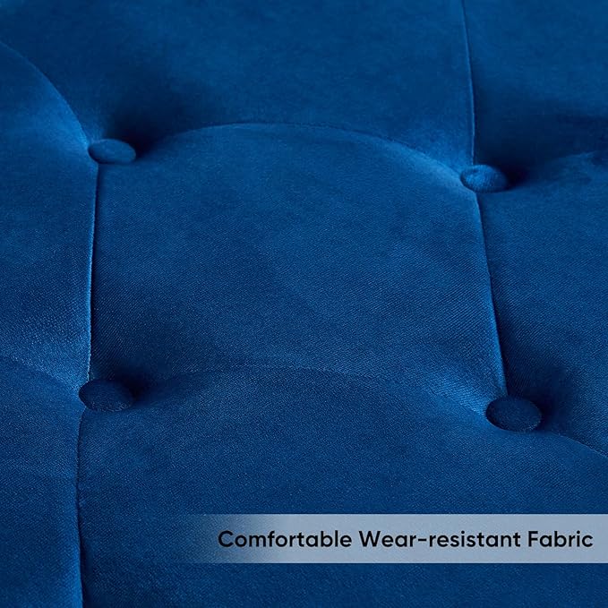 65" Storage Ottoman Bench, End of Bed Storage Bench King Size with Tufted Button Upholstered and Gold Legs, Bedroom Benches with Armrests for Living Room Window and Entryway, Navy Blue