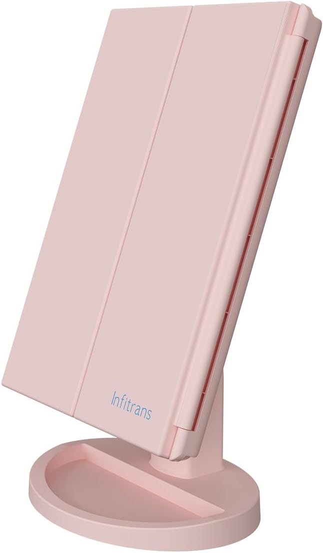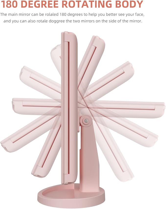 Trifold Makeup Mirror Vanity Mirror with Lights,1X 2X 3X Magnification,Touch Screen,180 Adjustable Rotation,Portable Travel Bathroom Cosmetic Mirror