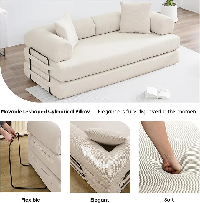 - Unparalleled Cloud Comfort: The sofa cama, wrapped in premium breathable small-streak corduroy, pairs high-density foam and spring pockets (for pressure relief) with two cylindrical pillows; This folding floor mattress couch delivers ergonomic bliss for lounging or slumber.