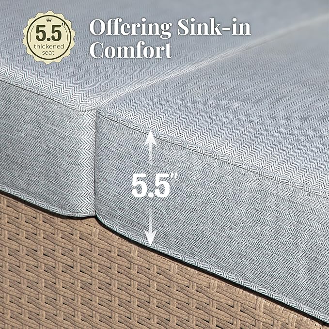 - Strongly Constructed for Longevity: Sturdy iron plate seat panels offer superior support compared to rattan seat panels, ensuring a super-safe sitting experience on this sofa set. Each seat can support approximately 300 lbs. The widened triple-strand arched armrests add a stylish dimension, while adjustable foot pads guarantee stability even on uneven surfaces