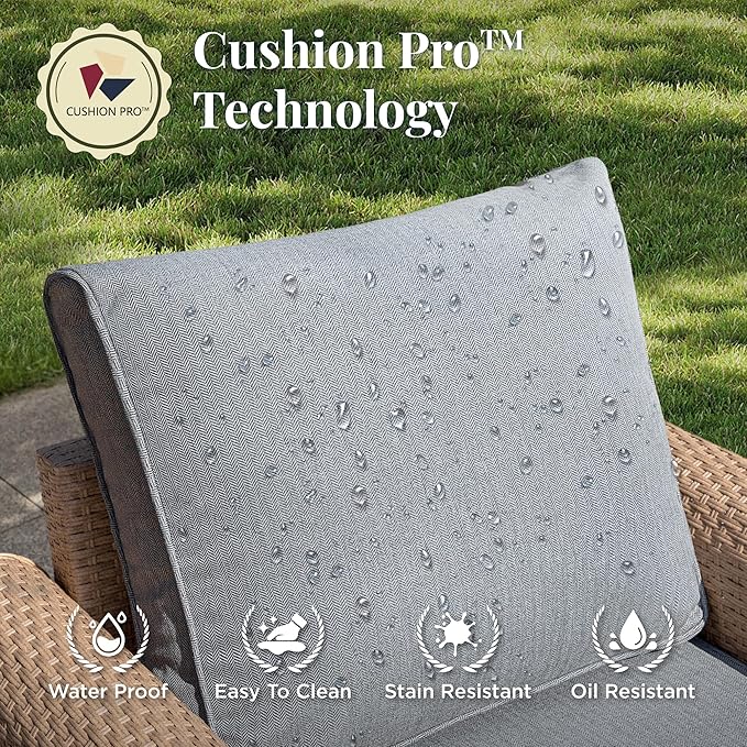 - Outdoor Furniture Set 4 Pieces: Includes 2 x Single Chairs, 1 x 3-Seater Sofa, 1 x Coffee Table, matching seat cushions, and pillows. Perfectly fitting with your backyard, poolside, porch, garden, and deck to create an outdoor comfort zone for you.