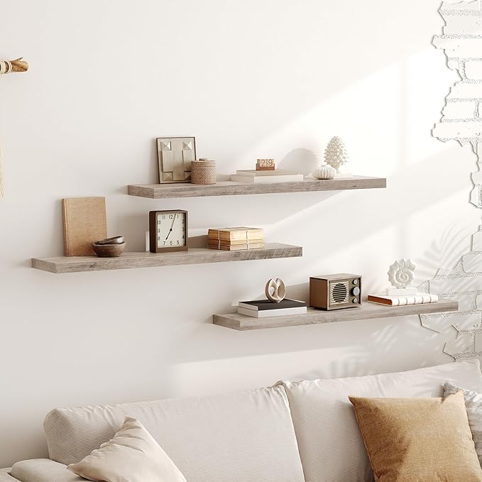 - Sleek Design: Featuring a classic wood grain finish, the floating shelves for wall add a natural warmth to your decor and are easy to clean. Use it to organize bathroom essentials or display books and photo frames, enhancing the aesthetic appeal of your home