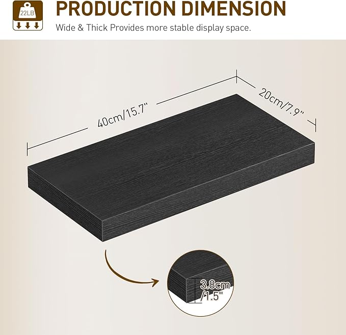 - Sturdy Load-Bearing: Constructed from high-quality thick particleboard paired with dual metal brackets, each 1.5" thick wall floating shelf supports up to 22 lb. The concealed brackets offer a sleek, minimalist look while ensuring durability and safety