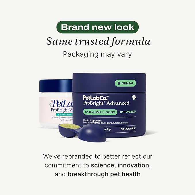PetLab Co. ProBright Advanced Dental Powder - Dog Breath Freshener - Teeth Cleaning Made Easy – Targets Tartar & Bad Breath - Packaging May Vary - Formulated for Extra Small Dogs