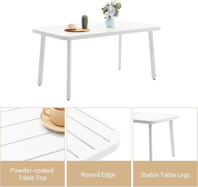 - STURDY ALUMINUM FRAME: Crafted from high-quality powder-coated aluminum, this dining table can last for years of outdoor use. This table is wide enough for you to accommodate 4 to 6 people and you can move it around easily because it is much lighter than metal dining table. Constructed with waterproof and rust-resistant aluminum structure, this dining table is both functional and decorative, and its metallic texture complements the overall modern style.