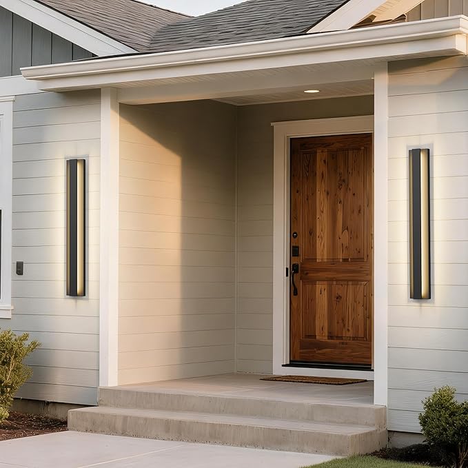 - Outdoor And Indoor Use: Due to its minimalist style and IP44 waterproof, the long outdoor wall light is an ideal choice for indoor or outdoor lighting and decoration; typically used in porch, beside garage door, front door, wall, patio, yard, backyard and garden; it also works well for indoor lighting such as hallway, bedroom, bedside, living room, basement, stairway, or corner; if you appreciate its appearance, you can use it anywhere in home, and you'll fall in love with its modern charm