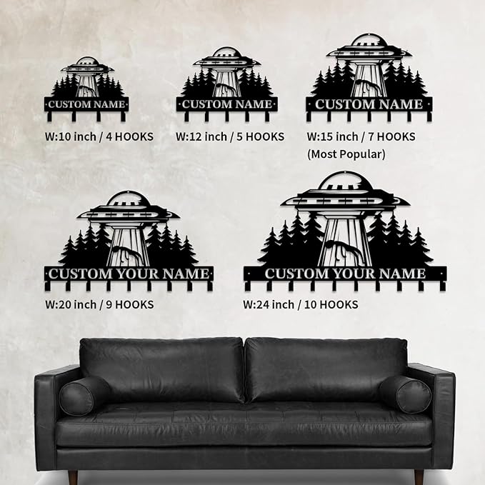 - Personalized Custom Alien ET UFO Wall Hooks - Unique, customizable design featuring an Alien ET UFO theme. Perfect for adding a futuristic touch to any room, and a great conversation starter. Ideal for keys, coats, or hats.