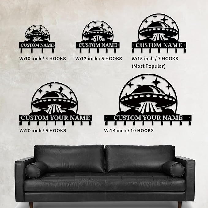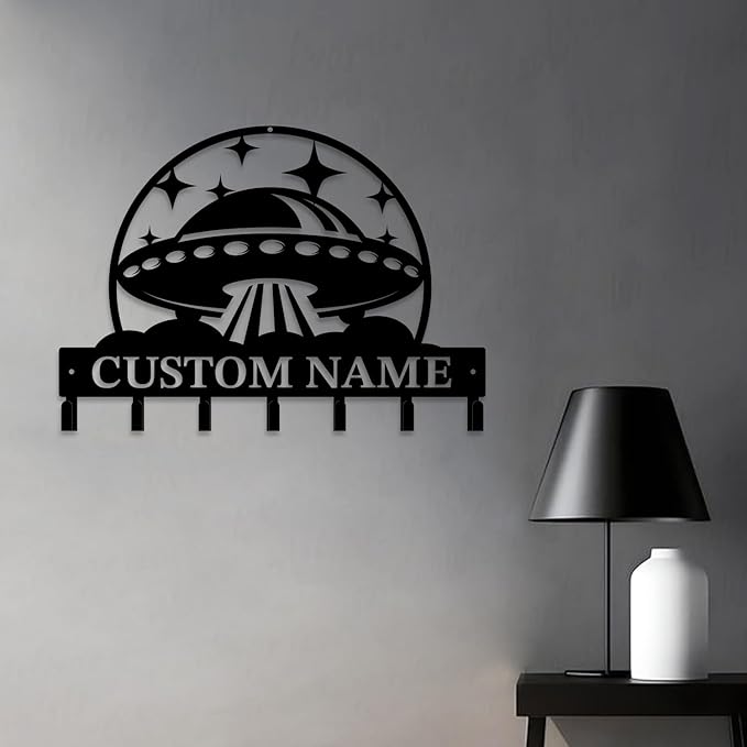 - Personalized Custom Alien UFO Wall Hooks - Unique, customizable design featuring an Alien UFO theme. Perfect for adding a futuristic touch to any room, and a great conversation starter. Ideal for keys, coats, or hats.