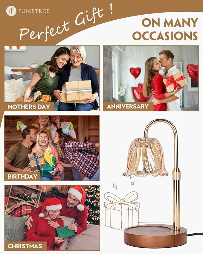 - Safety with Timer: This candle warmer lamp with timer uses 2 included 50W bulbs to melt wax without smoke, or soot—keeping your air clean and your home safe. Set the convenient 2/4/8-hour timer for worry-free operation, eliminating the danger of forgotten candles. A truly carefree way to enjoy your favorite fragrances