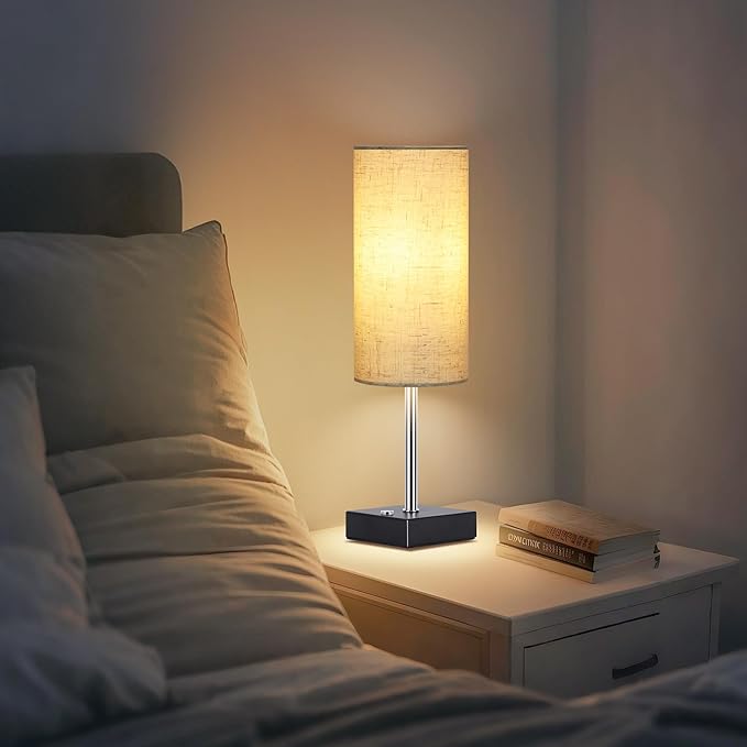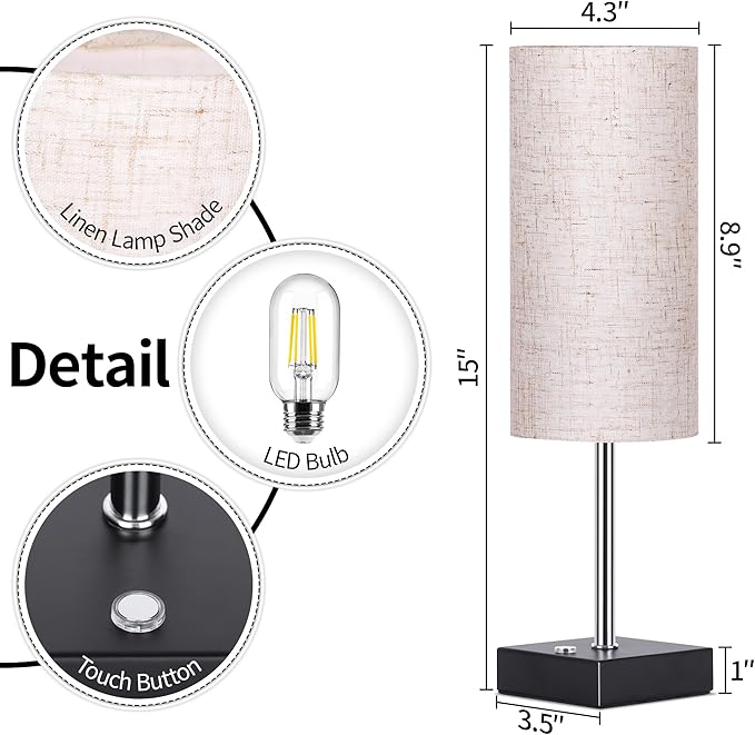 - Dimmable Bedside Lamp - This living room table lamp offers 3 levels of brightness (low, medium and high). Simply touch the dots to adjust the light to meet your different needs. The low brightness of the nightstand table lamp allows you to sleep or nurse peacefully. The medium brightness of the living room lamp allows you to watch TV shows or movies and enjoy cozy moments. The reading lamp lights up again with high brightness for studying or working. You can find the perfect lighting atmosphere effortlessly
