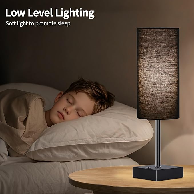 - Dimmable Bedside Lamp - This living room table lamp offers 3 levels of brightness (low, medium and high). Simply touch the dots to adjust the light to meet your different needs. The low brightness of the nightstand table lamp allows you to sleep or nurse peacefully. The medium brightness of the living room lamp allows you to watch TV shows or movies and enjoy cozy moments. The reading lamp lights up again with high brightness for studying or working. You can find the perfect lighting atmosphere effortlessly