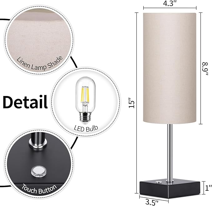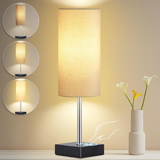 - Dimmable Bedside Lamp - This living room table lamp offers 3 levels of brightness (low, medium and high). Simply touch the dots to adjust the light to meet your different needs. The low brightness of the nightstand table lamp allows you to sleep or nurse peacefully. The medium brightness of the living room lamp allows you to watch TV shows or movies and enjoy cozy moments. The reading lamp lights up again with high brightness for studying or working. You can find the perfect lighting atmosphere effortlessly
