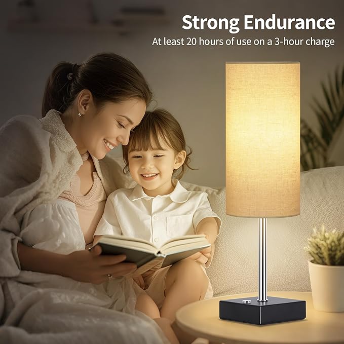 - PRACTICAL RECHARGEABLE TABLE LAMP - This table lamp comes with battery charging mode, cordless table lamp with oatmeal/linen/pink/gray/white/black/blue table lamp shades to choose from, charging for 3 hours (5V2A) high grade brightness can illuminate for 8 hours, the LED bedroom lamp brings long-lasting illumination to your life