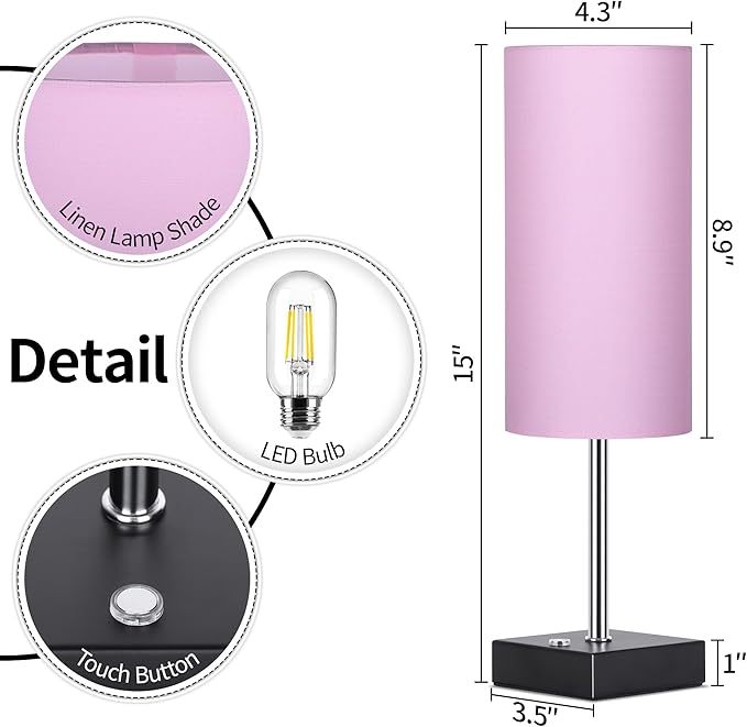- Dimmable Bedside Lamp - This living room table lamp offers 3 levels of brightness (low, medium and high). Simply touch the dots to adjust the light to meet your different needs. The low brightness of the nightstand table lamp allows you to sleep or nurse peacefully. The medium brightness of the living room lamp allows you to watch TV shows or movies and enjoy cozy moments. The reading lamp lights up again with high brightness for studying or working. You can find the perfect lighting atmosphere effortlessly