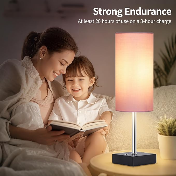 - PRACTICAL RECHARGEABLE TABLE LAMP - This table lamp comes with battery charging mode, cordless table lamp with oatmeal/linen/pink/gray/white/black/blue table lamp shades to choose from, charging for 3 hours (5V2A) high grade brightness can illuminate for 8 hours, the LED bedroom lamp brings long-lasting illumination to your life