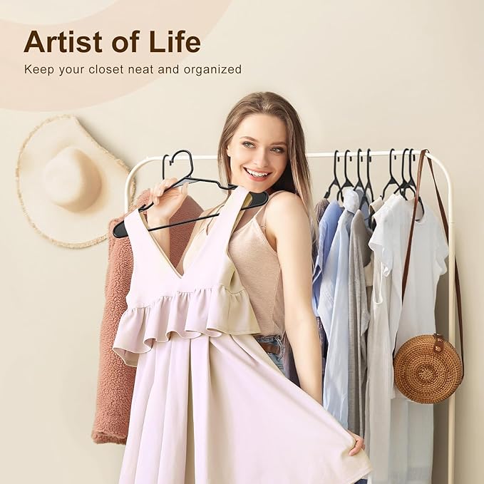 - Space Saving Hangers - These bulk hangers are sturdy and durable enough for everyday use, the slim design save more than 50% of the closet space. Black clothes hangers make your closet more manageable - not only does it look neater, but it also means you'll spend less time fighting with cluttered hangers