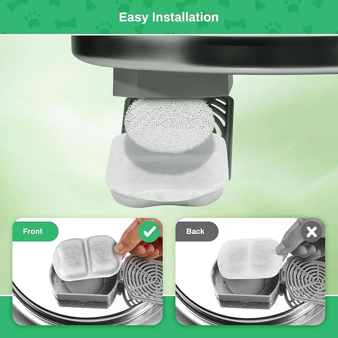- Multiple Layers of Filtration: Activated carbon eliminates bad odors; non-woven fabric captures cat hair and impurities and sponge filter debris to prevent clogging and damage. Maximum protection for your pet's healthy drinking water