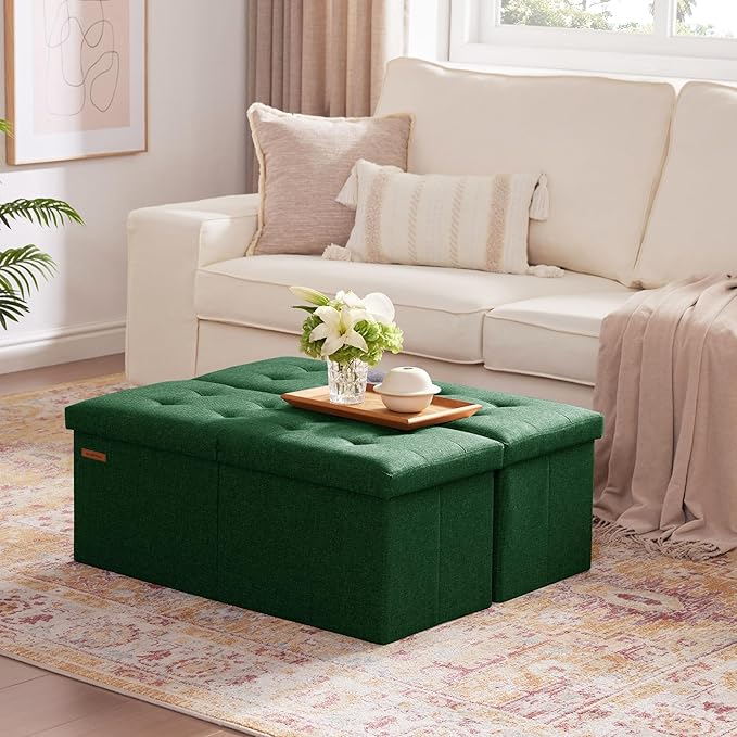 - Easy to use: With a simple manual with intuitive graphics, you can quickly set up a storage ottoman in a short time. When not in use, it is easy to fold and takes up less space, making it an ideal storage solution for small spaces.