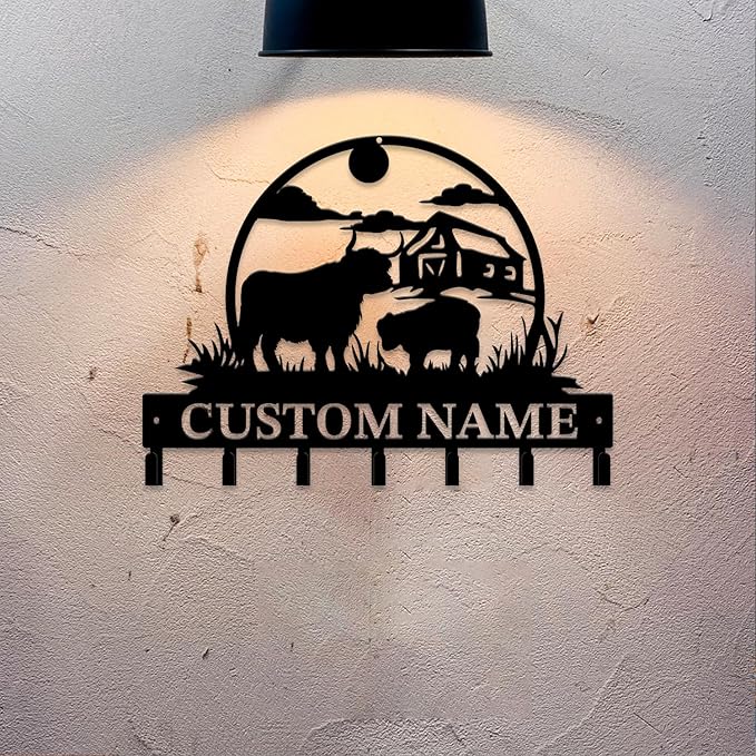 - Highland Cow Wall Hooks Metal Signs: Crafted from durable black metal, these hooks feature a stylish Highland Cow theme, making them a standout decorative piece for any room.