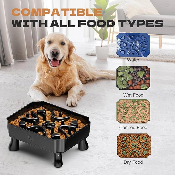 - 2-in-1 Removable Bowl: This 2-in-1 dog bowl becomes a slow feeder with the puzzle insert tray or a standard single bowl without it with wet and dry foods. The bowl is detachable, allowing for easy hand washing or cleaning in the dishwasher