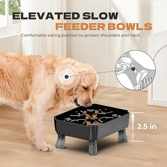 UPSKY Slow Feeder Dog Bowl, 2-in-1 Raised Dog Bowl with Anti-Choking Maze Puzzle, 2-6 Cups Pet Food for Small & Medium Breeds, Interactive Pet Feeder to Slow Eating, Reduce Boredom Black