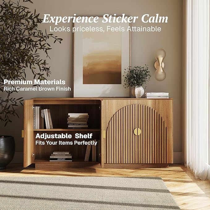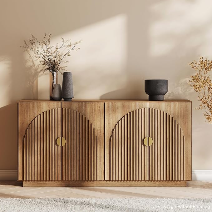 - Elegant Symmetrical Arc Design with U.S. Design Patent Pending: The sideboard cabinet showcases a striking symmetrical arc on its doors, crafted with thick panels and hand-nailed decorative strips. This unique design adds a touch of sophistication to any dining room, kitchen, or living room, elevating your home's aesthetic appeal.