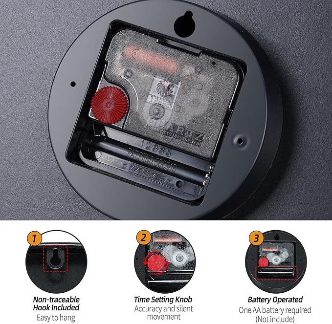 - 【SILENT SWEEP MOVEMENT】 The clock is equipped with a silent movement. You can enjoy the accurate timekeeping without any distractions and will not be disturbed by any ticking noise. It allows you to have a peaceful and comfortable living and working environment.