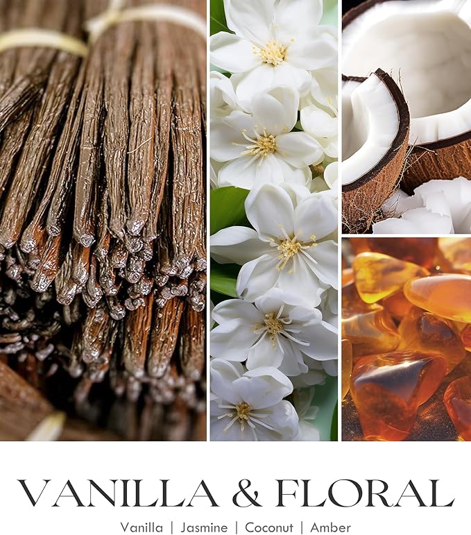 - HIGHLY SCENTED VANILLA CANDLE: The aromatherapy candle called Vanilla is meant to fill your room with aroma, with the top scent of Vanilla , middle scent of Jasmine, Suzuki, Vanilla, base scent of Coconut, Musk, Amber, Vanilla, Sandalwood. The vanilla candles for home scented makes you refreshed, relaxed and pleasant all the day