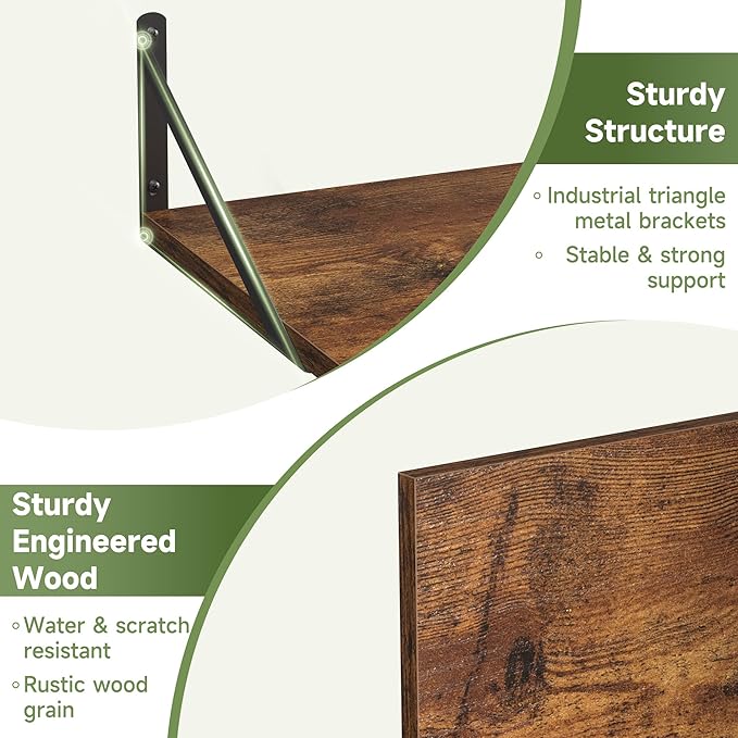 - 【Sturdy & Durable】Our black floating book shelves for wall feature a robust construction crafted with strong metal triangular brackets and high-quality particle board ,which is durable and long-lasting.The wonderful surfaced particle board texture decorates your home with a natural and rustic beauty!