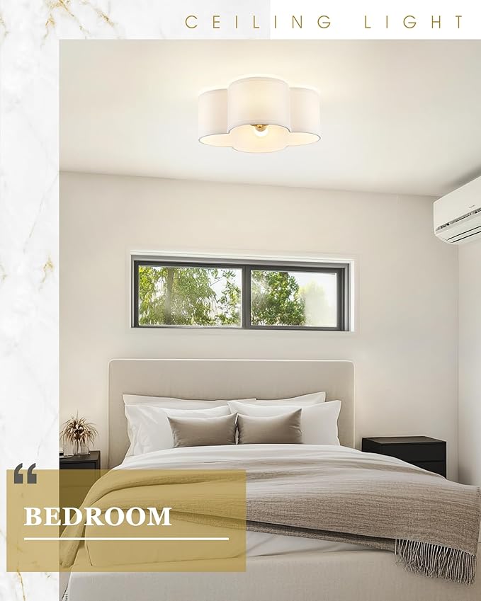 - Farmhouse Style: Utilizing a fabric shade in quatrefoil shape and a brass finish, the farmhouse flush mount ceiling light offers a farmhouse minimalist feel. These light fixtures ceiling mount can not only light up your whole room – but this is also a great way to show off your personal style
