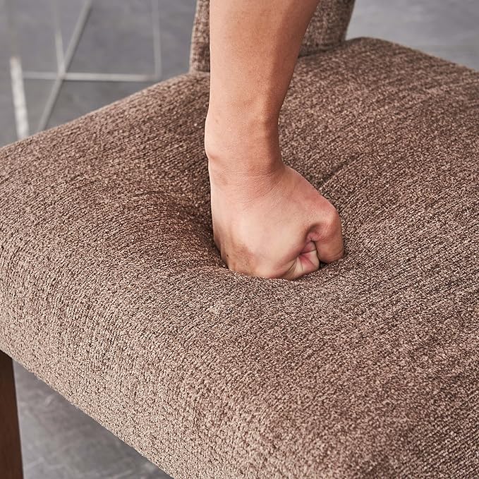 VKNOW Wooden Dining Chairs Set of 2, Modern Fabric Upholstered Dining Room Chair Kitchen Chairs, Farmhouse Dinner Chair for Kitchen Dining Room, Brown