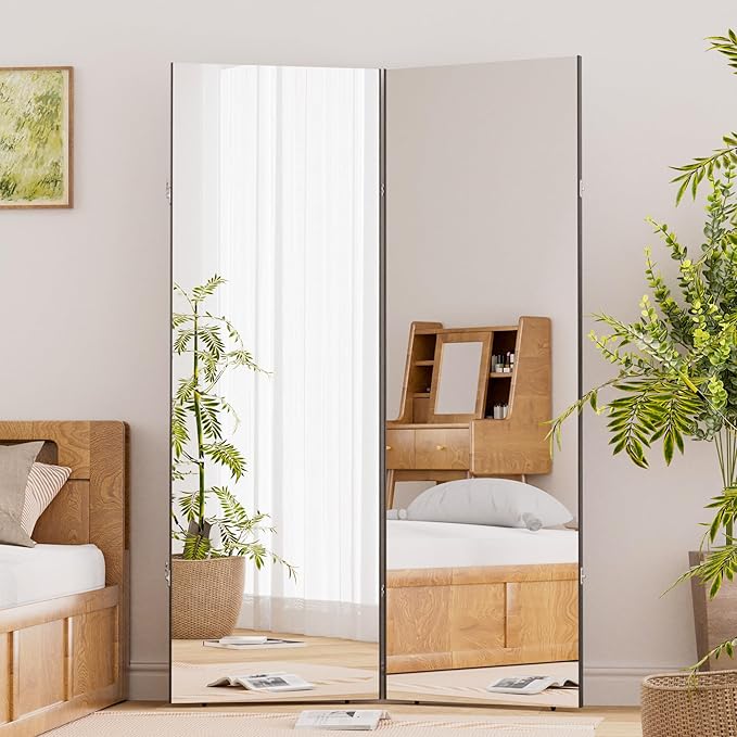- 【Extra-Large Yet Foldable】71"x47" oversized mirror folds to 1/3 thickness for compact storage, ideal for small spaces in homes, gyms, or studios.