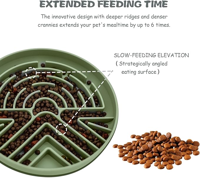 - 【Premium Food-Safe Design】Our slow feed dog bowl is made of 100% food-grade silicone, BPA-free and non-toxic. The durable pet slow feeder features a non-slip base with strong suction cups to prevent tipping and spills, making mealtime clean and safe for your furry friends.