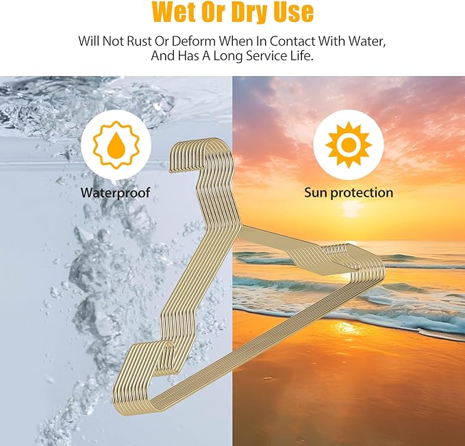 - 【Wet and Dry】Our aluminum hangers use the latest electroplating technology, which can be completely waterproof, rust-proof and fade-proof. They are ideal for protecting delicate clothing. Even if the aluminum hangers are soaked in water for a long time, they will not fade or rust.