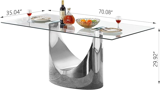 - SIZE: 70 inches in length, 35.4 inches in width, and 30 inches in height, this glass dining room table provides ample dining space while maintaining a compact footprint.