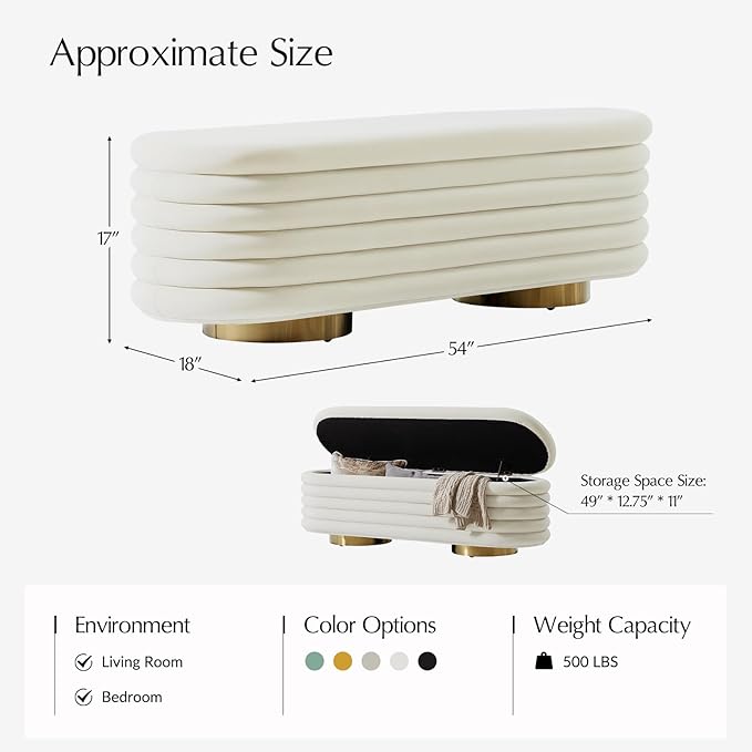 - Hidden Storage Compartment: Designed for practicality, the bench includes a spacious hidden storage compartment beneath the seat. Perfect for stowing away blankets, pillows, or books, this feature helps keep your space tidy while maintaining a sleek, clutter-free look.