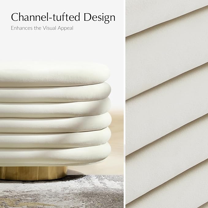 - Channel-tufted Design: Featuring a meticulously crafted channel-tufted pattern, this bench combines timeless elegance with modern design. The intricate detailing not only enhances its visual appeal but also adds a sense of depth and structure, making it a versatile addition to both contemporary and traditional interiors.