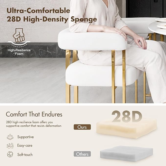 - *Glamorous Modern Design- Elevate your home's aesthetic with our stunning dining chair. It features a bold, contemporary design where sumptuous velvet upholstery meets elegant gold chrome legs. This striking combination creates a captivating focal point, making it the nice glamorous accent for any modern dining room, living space, or breakfast nook