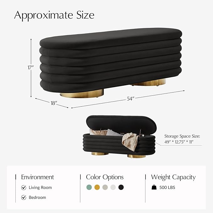 - Hidden Storage Compartment: Designed for practicality, the bench includes a spacious hidden storage compartment beneath the seat. Perfect for stowing away blankets, pillows, or books, this feature helps keep your space tidy while maintaining a sleek, clutter-free look.