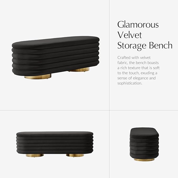 HULALA HOME Velvet Storage Bench, Large Upholstered Ottoman Bench with Button Tufted Design for Living Room, Bedroom, Entryway, or Window, End of Bed Bench with Shoe Storage, Modern Home Decor, Black