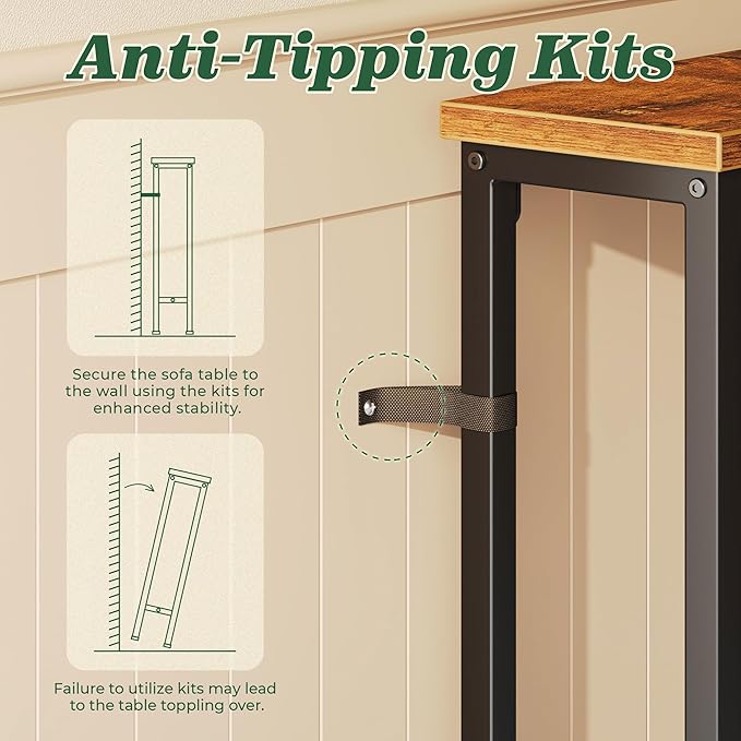 - 【Quick Assembly and Stability】With easy-to-follow instructions, simple construction, and included tools, you can have this sofa table with outlet assembled in just 15 minutes. For added stability, attach it to the wall, and use the adjustable feet to keep it level on uneven floors