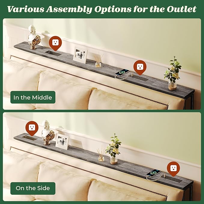 - 【Quick Assembly and Stability】With easy-to-follow instructions, simple construction, and included tools, you can have this sofa table with outlet assembled in just 15 minutes. For added stability, attach it to the wall, and use the adjustable feet to keep it level on uneven floors