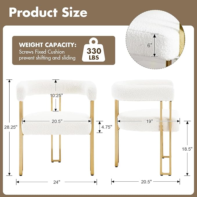 - *Glamorous Modern Design- Elevate your home's aesthetic with our stunning dining chair. It features a bold, contemporary design where sumptuous boucle upholstery meets elegant gold chrome legs. This striking combination creates a captivating focal point, making it the nice glamorous accent for any modern dining room, living space, or breakfast nook