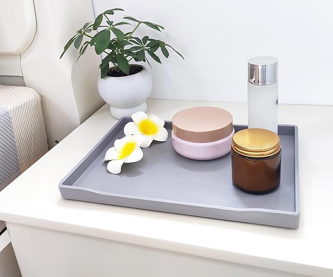 Gray Serving Tray (11.8 x 8.7 inch) for Serving Accessory, Spa, Coffee, Drinks, Wine, Tea, Bar, Party, Seasoning, Perfume and Display Use.