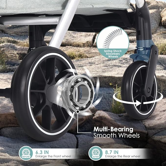 - Smooth Ride with 4-Wheel Shock Absorption: Designed for ultimate comfort, the X6 pet stroller is equipped with large front and rear wheels, both featuring high-quality bearings for a smooth and stable ride. The 4-wheel shock absorption system ensures your pet enjoys a bump-free experience on any terrain, from city sidewalks to park trails.
