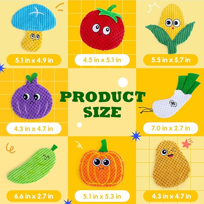 - 【Easy to Clean & Durable】8 plush dog toys set with different textures and different colors. Tight seams that don't get torn easily and will last a long time,very durable! Stuffingless squeaky toys and no any hidden dangerous stuffing, no worry about swallow or choke on. It is easy to clean and not easy to fade. You no longer have to worry about stuffing everywhere after the toy is bitten.