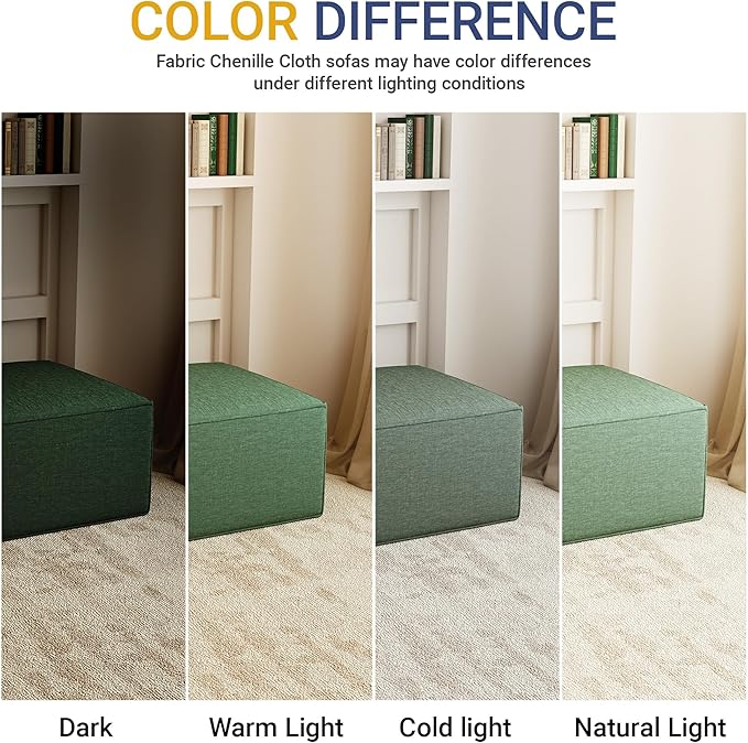 38“ Modular Sectional Sofa Convertible Cube Compressed Couch Seat Set, Combine L-Shaped U-Shaped, Free Assembly, Space-Saving for Living Room, Thick Foam Fabric Chenille Green (Only Ottoman)