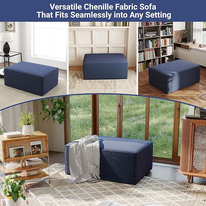 38“ Modular Sectional Sofa Convertible Cube Compressed Couch Seat Set, Combine L-Shaped U-Shaped, Free Assembly, Space-Saving for Living Room, Thick Foam Fabric Chenille Blue (Only Ottoman)