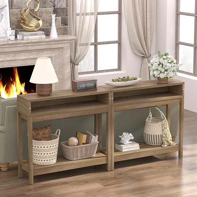 - 【Functional Shelves】Equipped with shelves, the Console Table offers extra storage space, enhancing its utility as an entryway table or behind-couch sofa table.